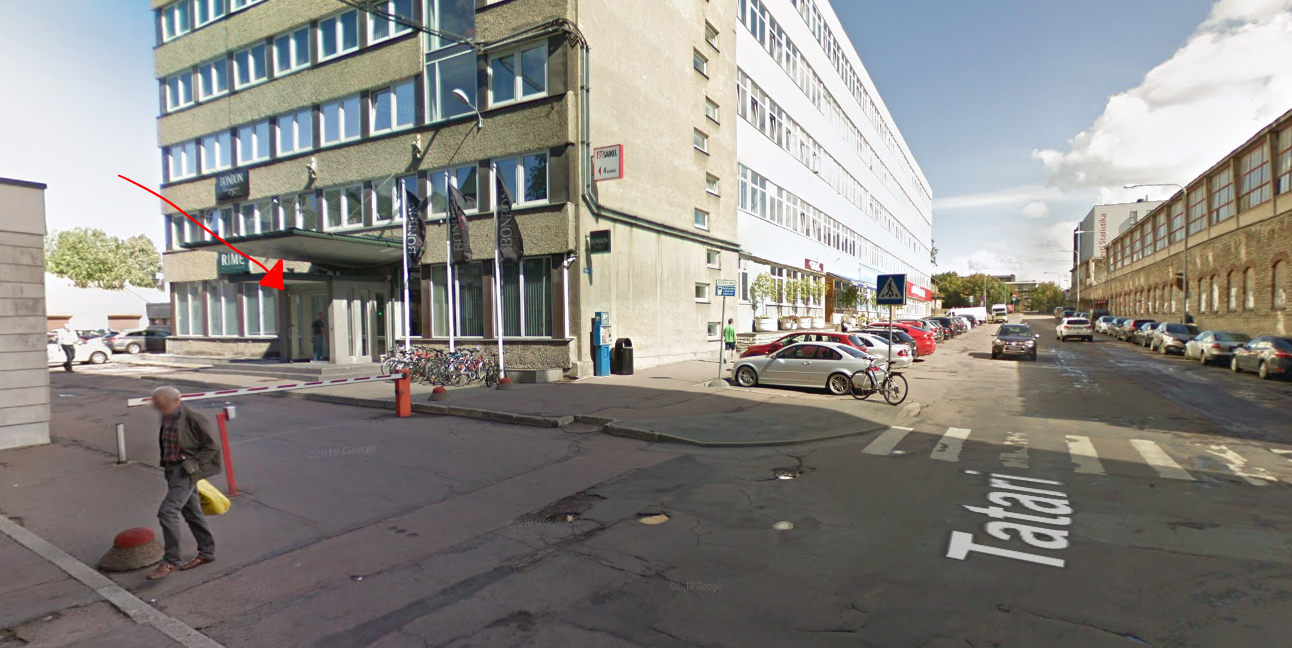 Asume aadressil Tatari 64. Maja sissepääs on Pärnu mnt poolses otsas, läbi klaasuste.